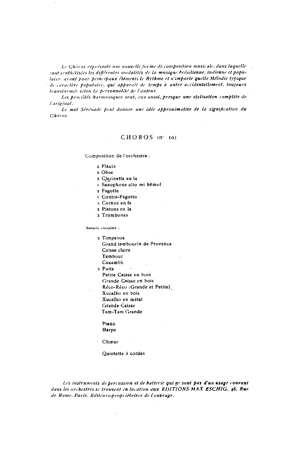 | Genre Categories | Chorinhos; Dances; For mixed chorus, orchestra; |