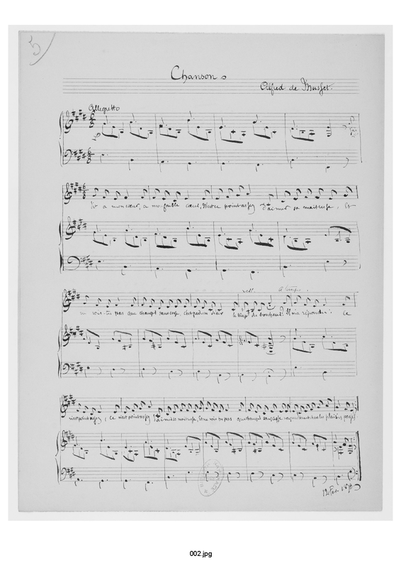 Part of a set of 3 Chansons (composed, or at least dated, 12 and 13 Feb. 1878) described here @ BNF.