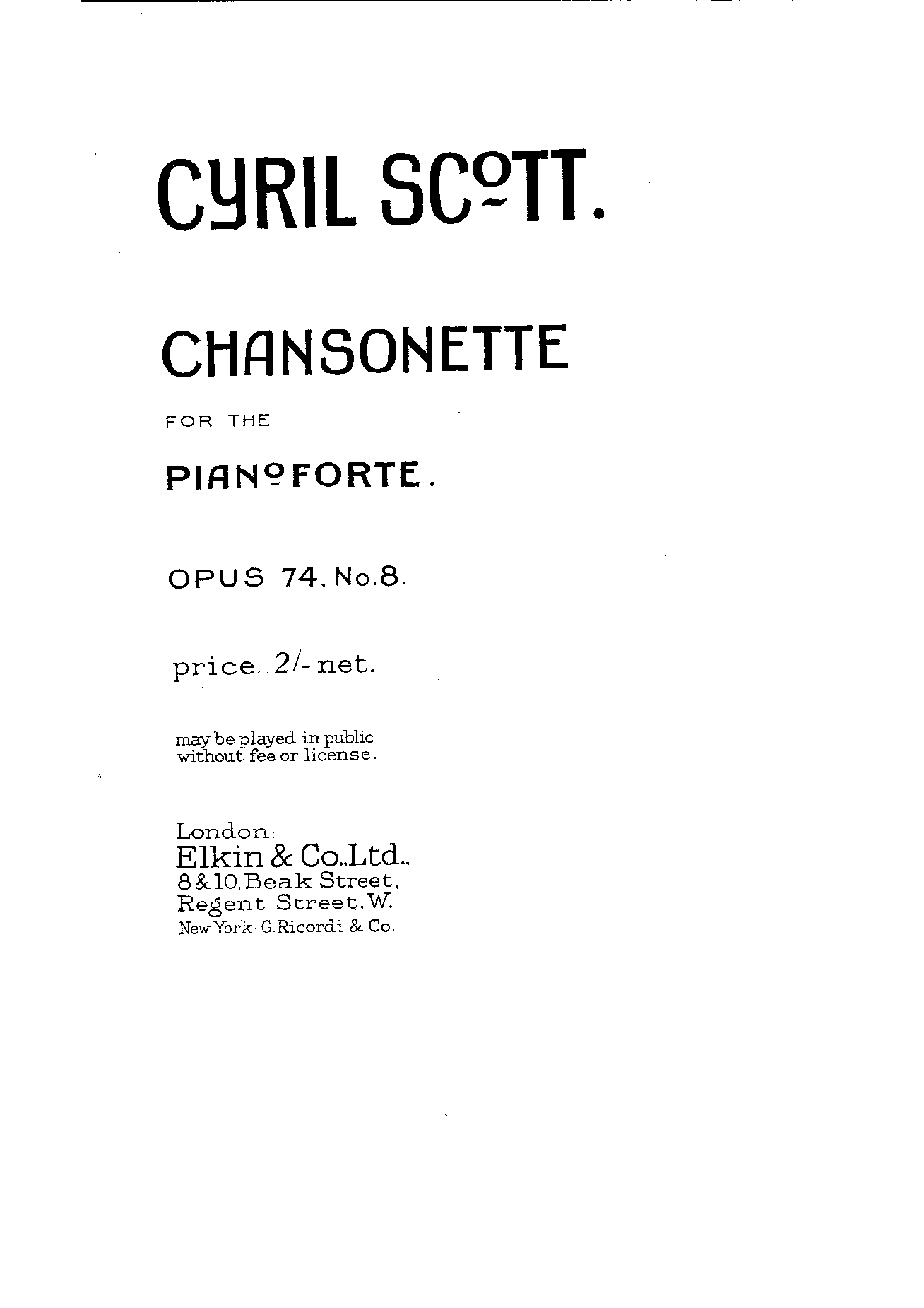 Chansonette, Op.74 No.8 (Scott, Cyril)