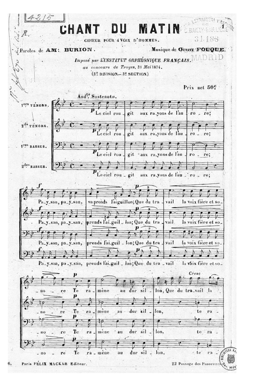 Imposé par l'Institut Orphéonique Français au concours de Troyes, 31 Mai 1874. (3e. division—3e. section)