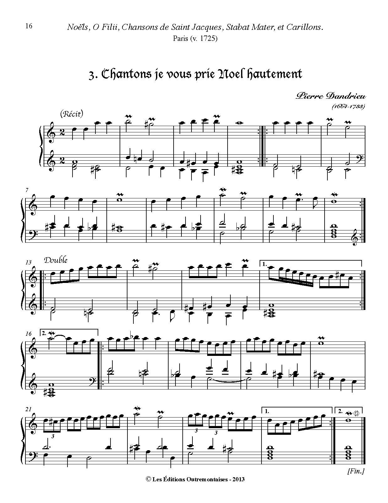 | First Publication. | 1733 in Noëls, O filii, chansons de Saint-Jacques, Stabat mater, et carillons (No.3) or before* |