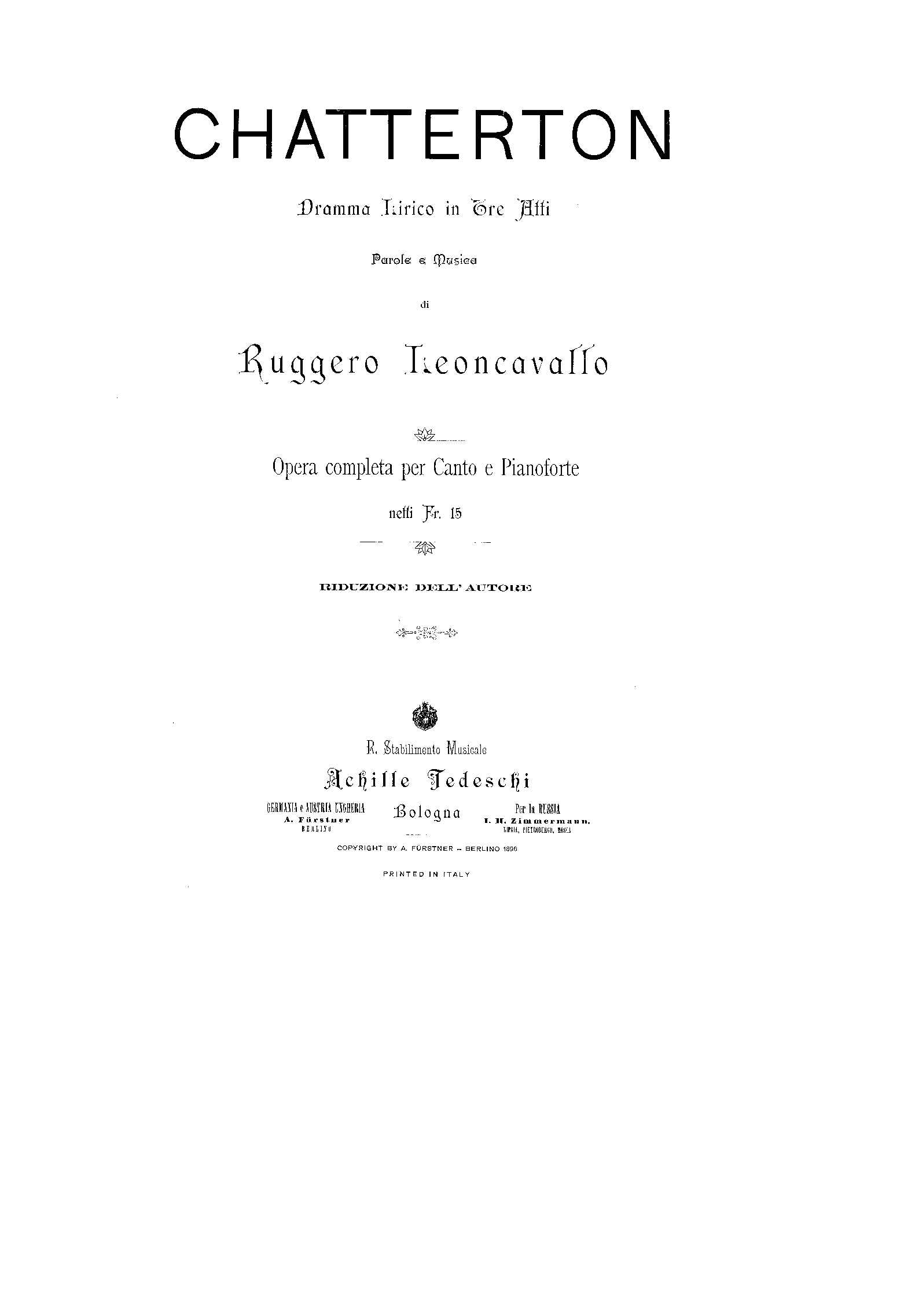 | First Publication. | 1896 – Berlin: Fürstner |