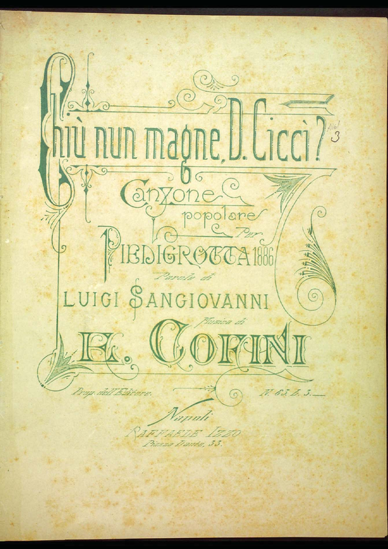 | Alternative. Title | Chiù nun magne, don Ciccì?; Canzone popolare per Piedigrotta 1886 |