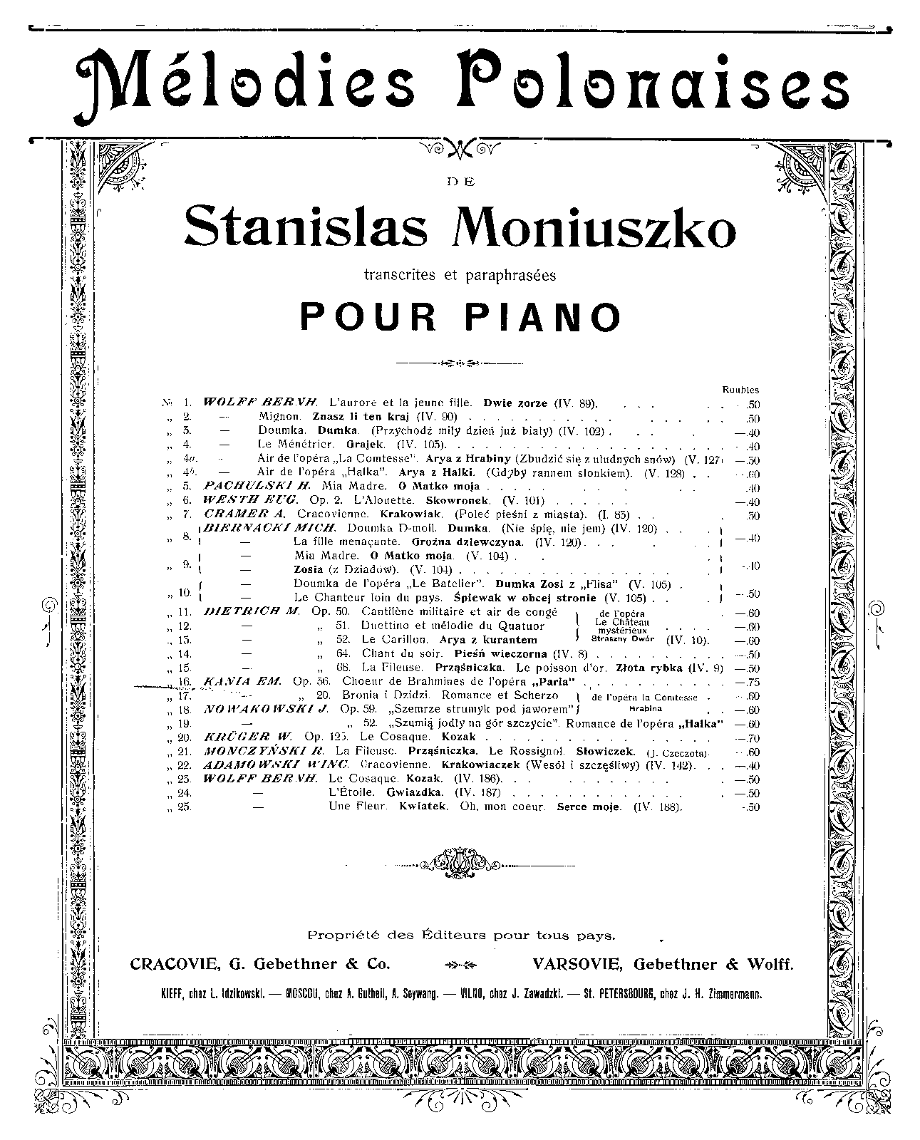 | Alternative. Title | Choeur des Brahmines de l'opéra Paria de St. Moniuszko. Transcription |