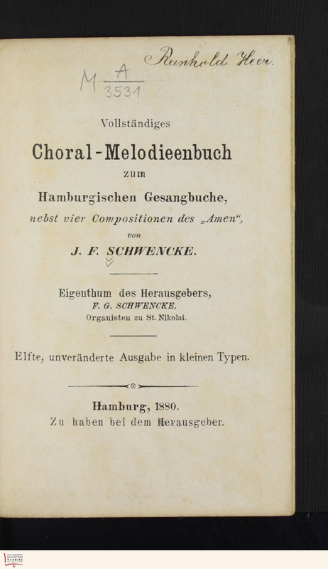| Work Title | Choral-Buch zum Hamburgischen Gesangbuche |