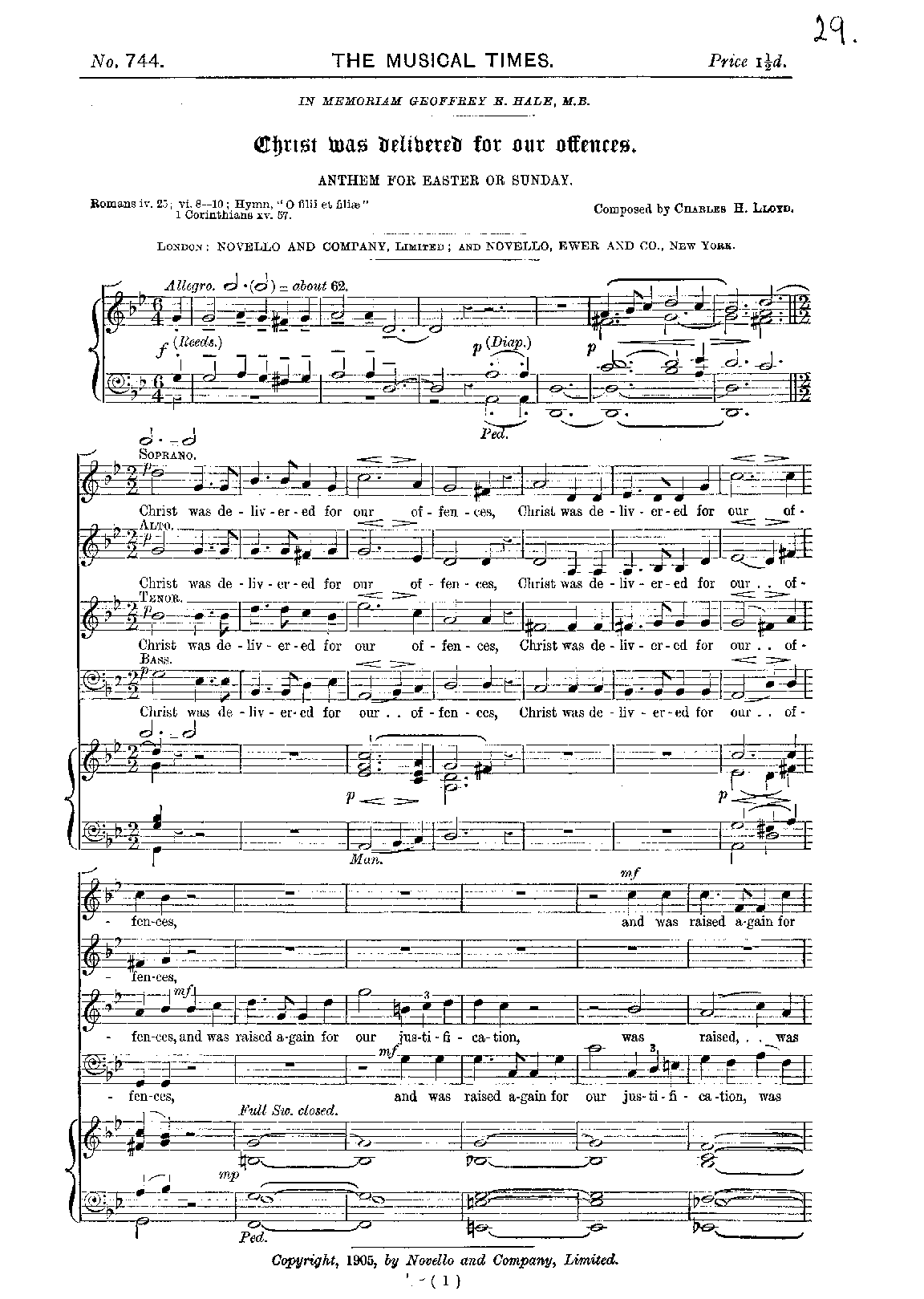 Christ was Delivered for Our Offences (Lloyd, Charles Harford)