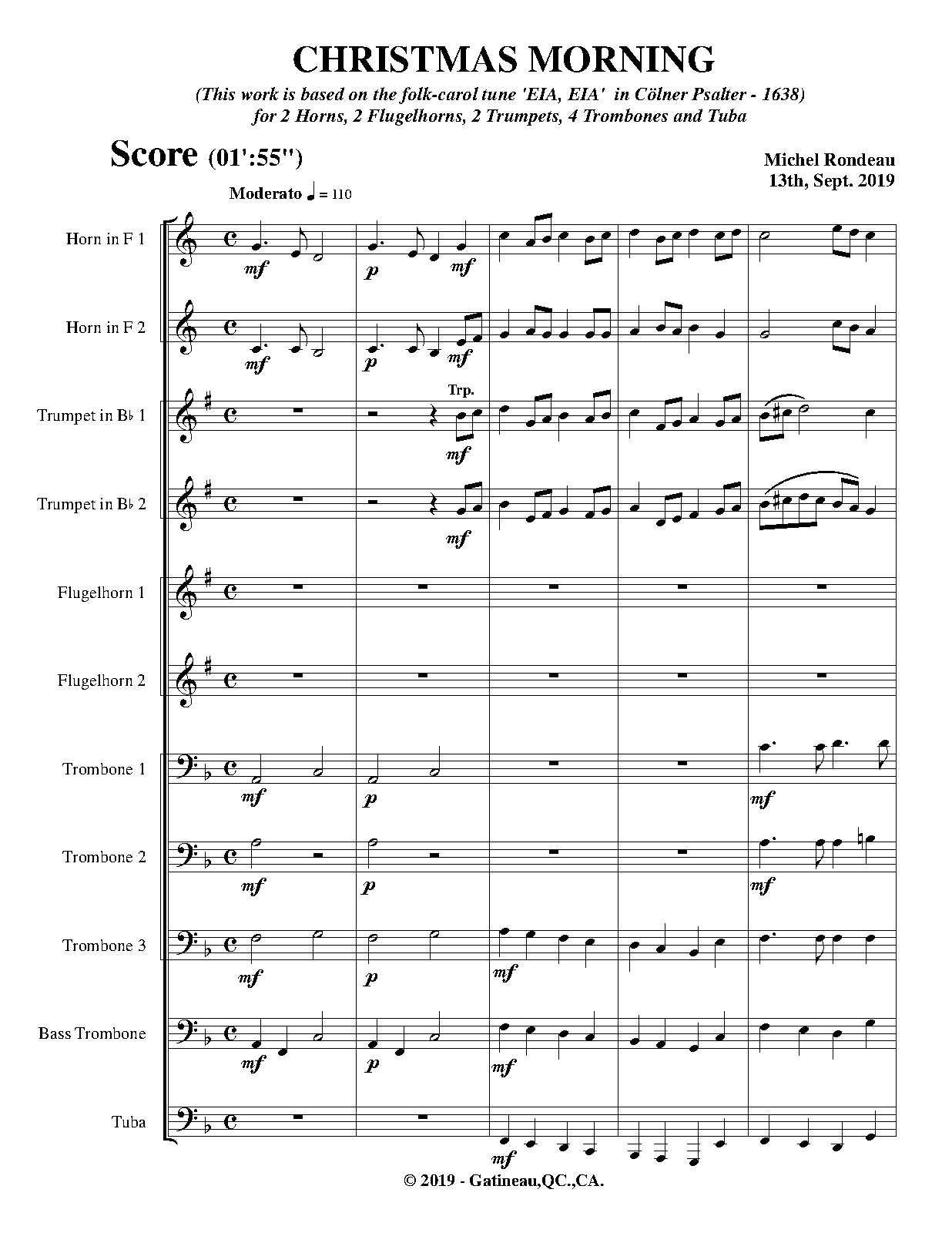 | Instrumentation | 2 horns, 2 flugelhorns, 2 trumpets, 4 trombones, tuba |
