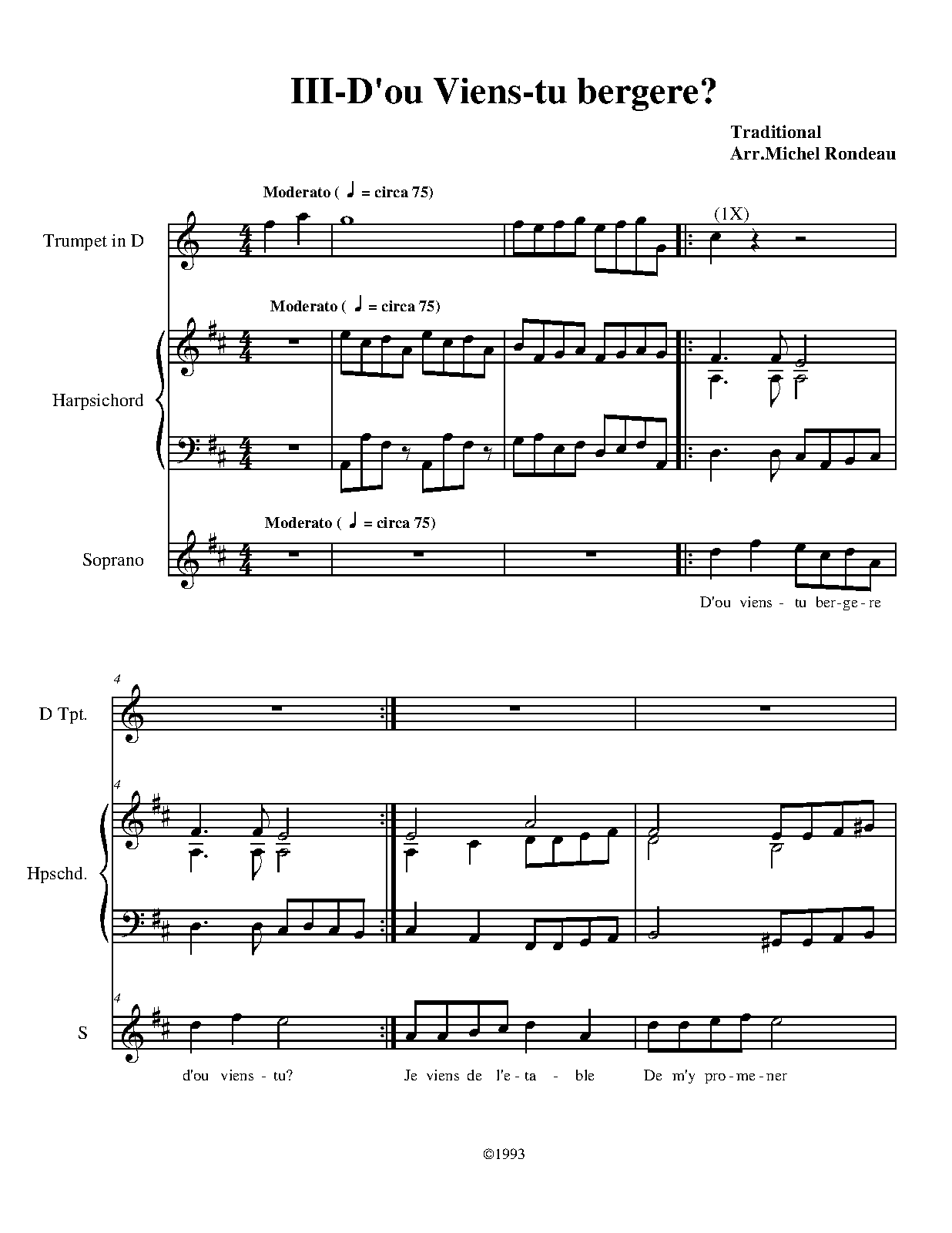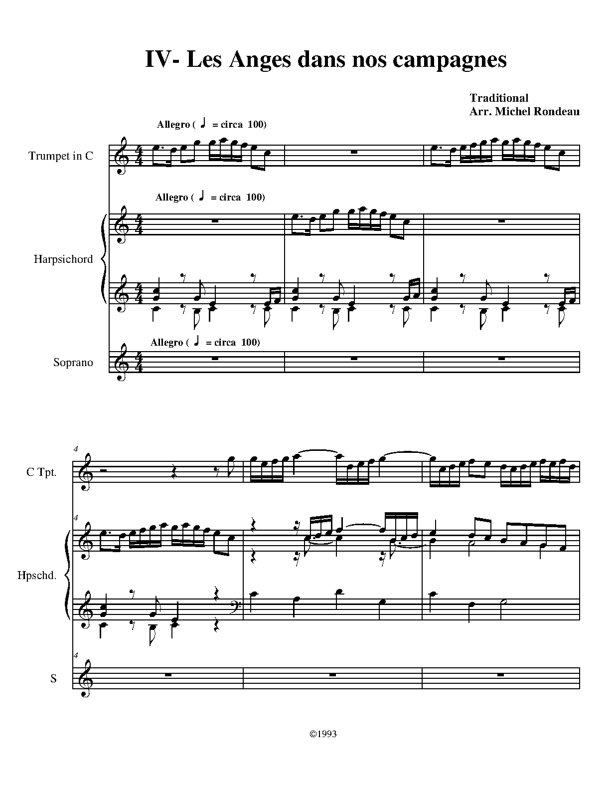 | Instrumentation | Soprano, trumpet and harpsichord (arranged from various traditional melodies) |