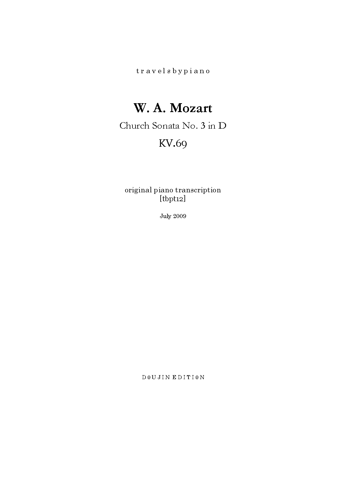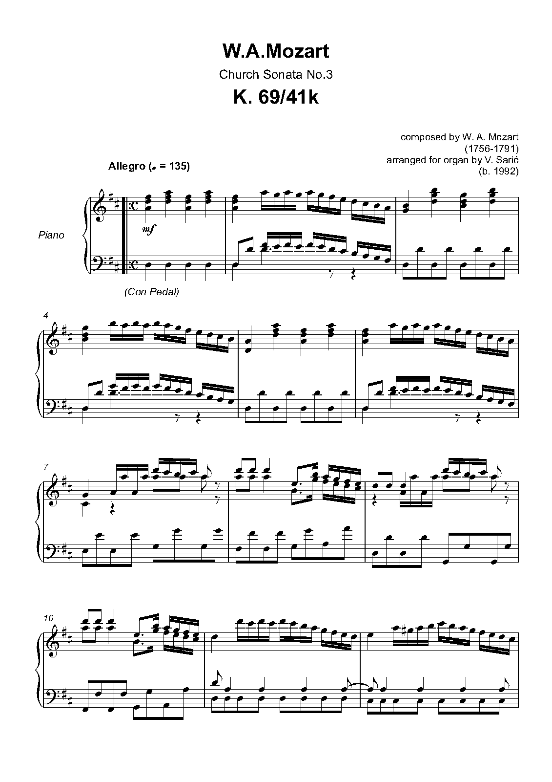 External Links Church Sonata in D major, K.69/41k -  Scores at Sheet Music Plus