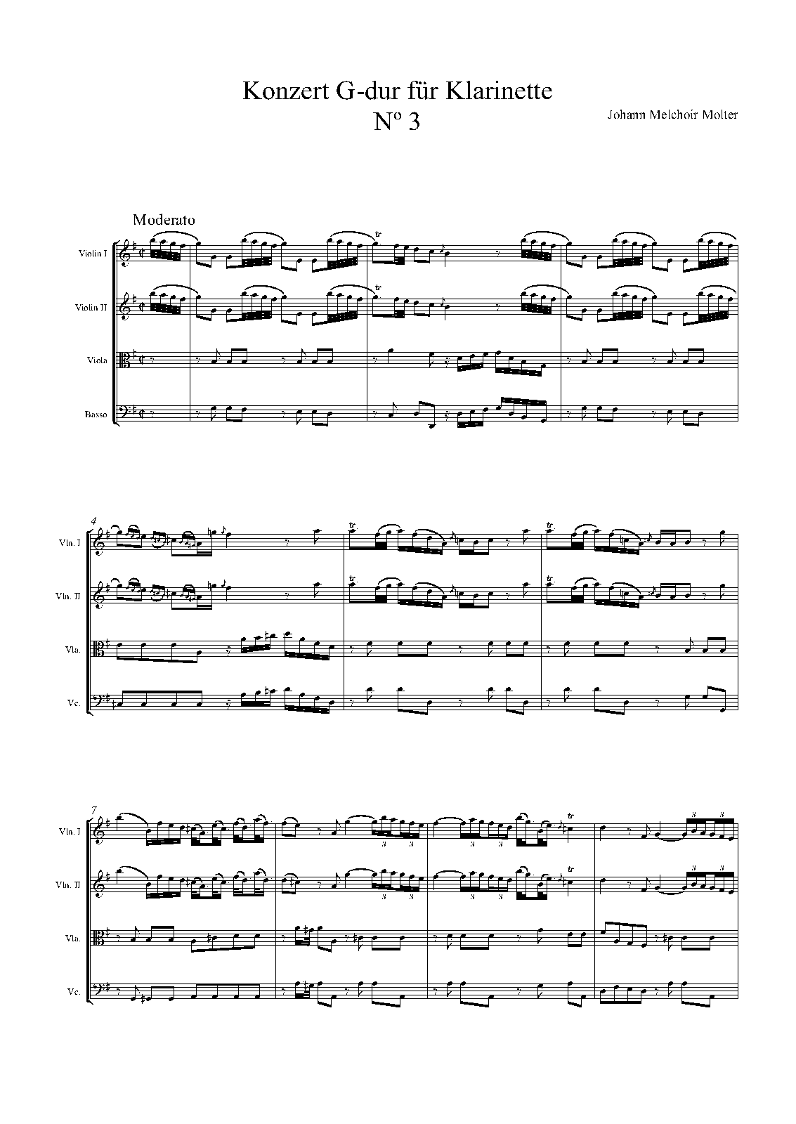 Concerto Clarinetto concertato, Violino primo, Violino secondo, Viola, Violoncello e Cembalo