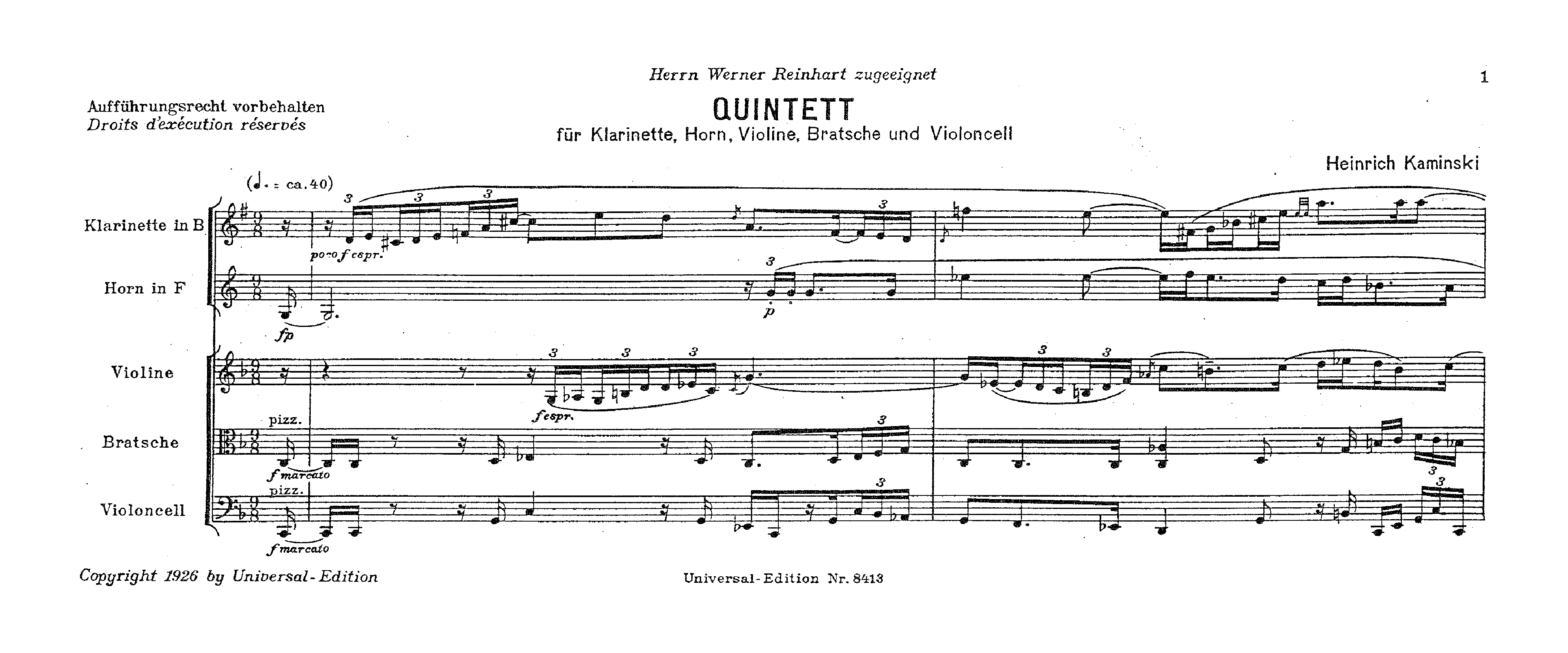 | Instrumentation | clarinet, horn, violin, viola, cello |