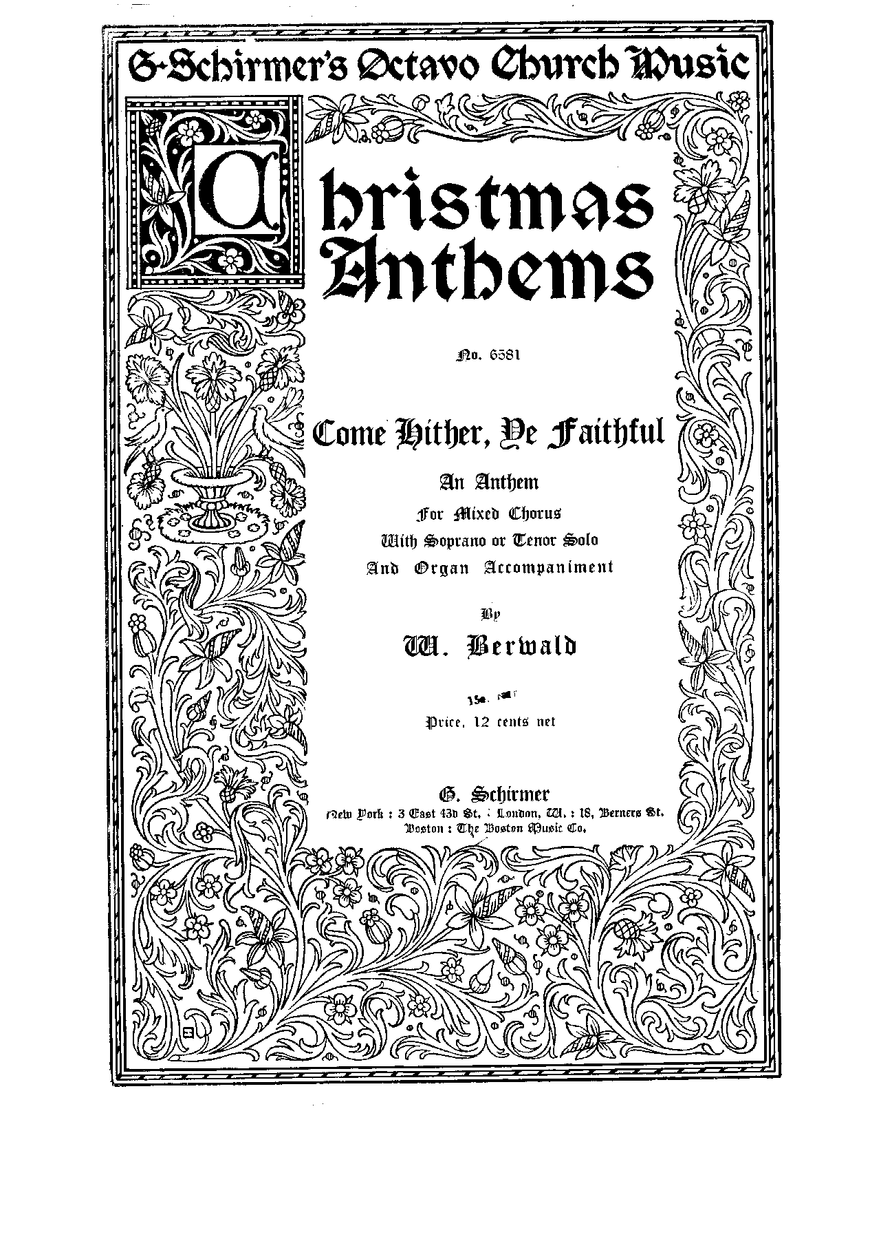 | Alternative. Title | Come Hither, Ye Faithful. An (Christmas) Anthem for Mixed Chorus with Soprano or Tenor solo and Organ Accompaniment |