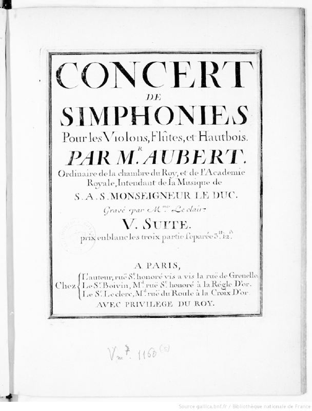 | Work Title | Concert de Simphonies pour les violons, flûtes et hautbois |