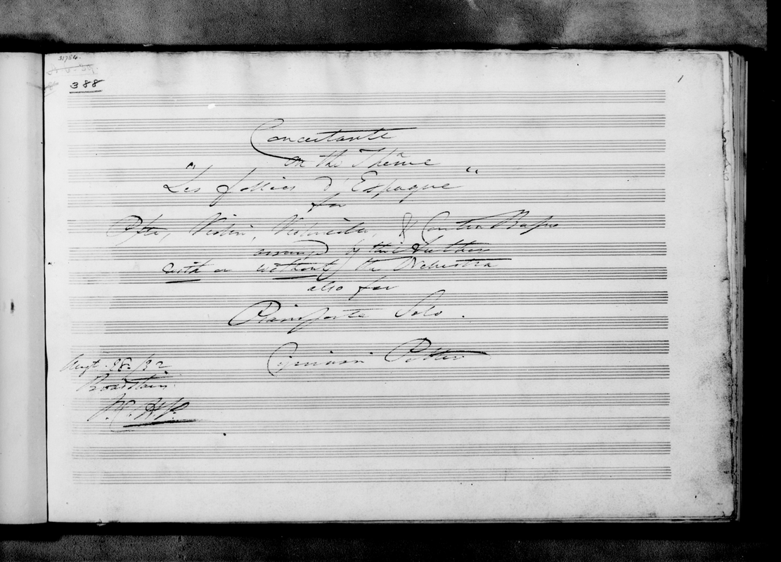 Concertante / on the Theme / "Les follies d'Espagne" / for / Pfte, Violin, Violoncell & ContraBass /