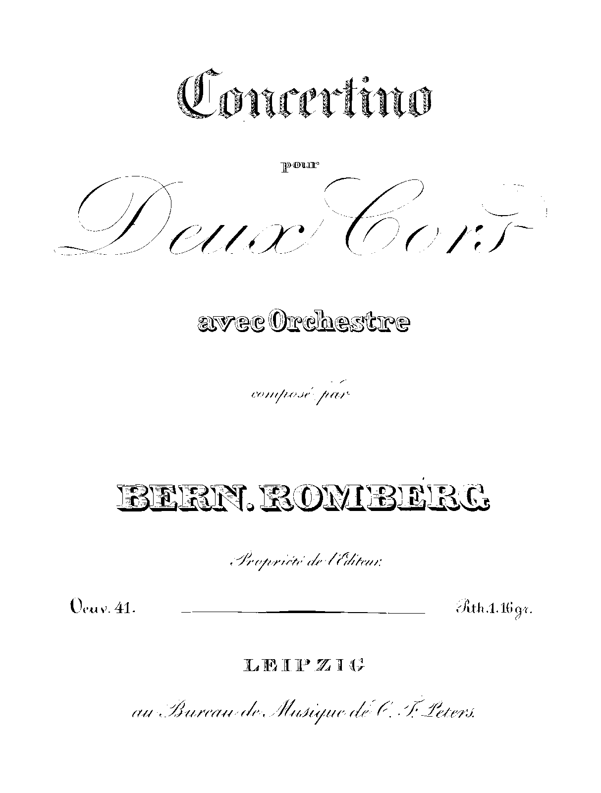 | Alternative. Title | Concertino pour deux cors avec orchestre |