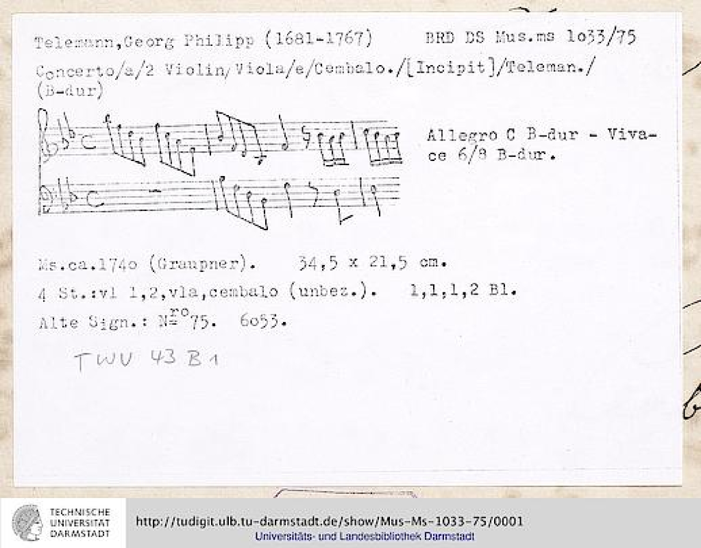 Opus/Catalogue NumberOp./Cat. No. TWV 43:B1