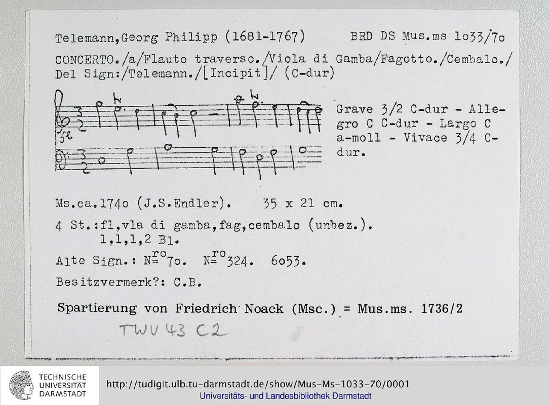 | Opus/Catalogue NumberOp./Cat. No. | TWV 43:C2 |