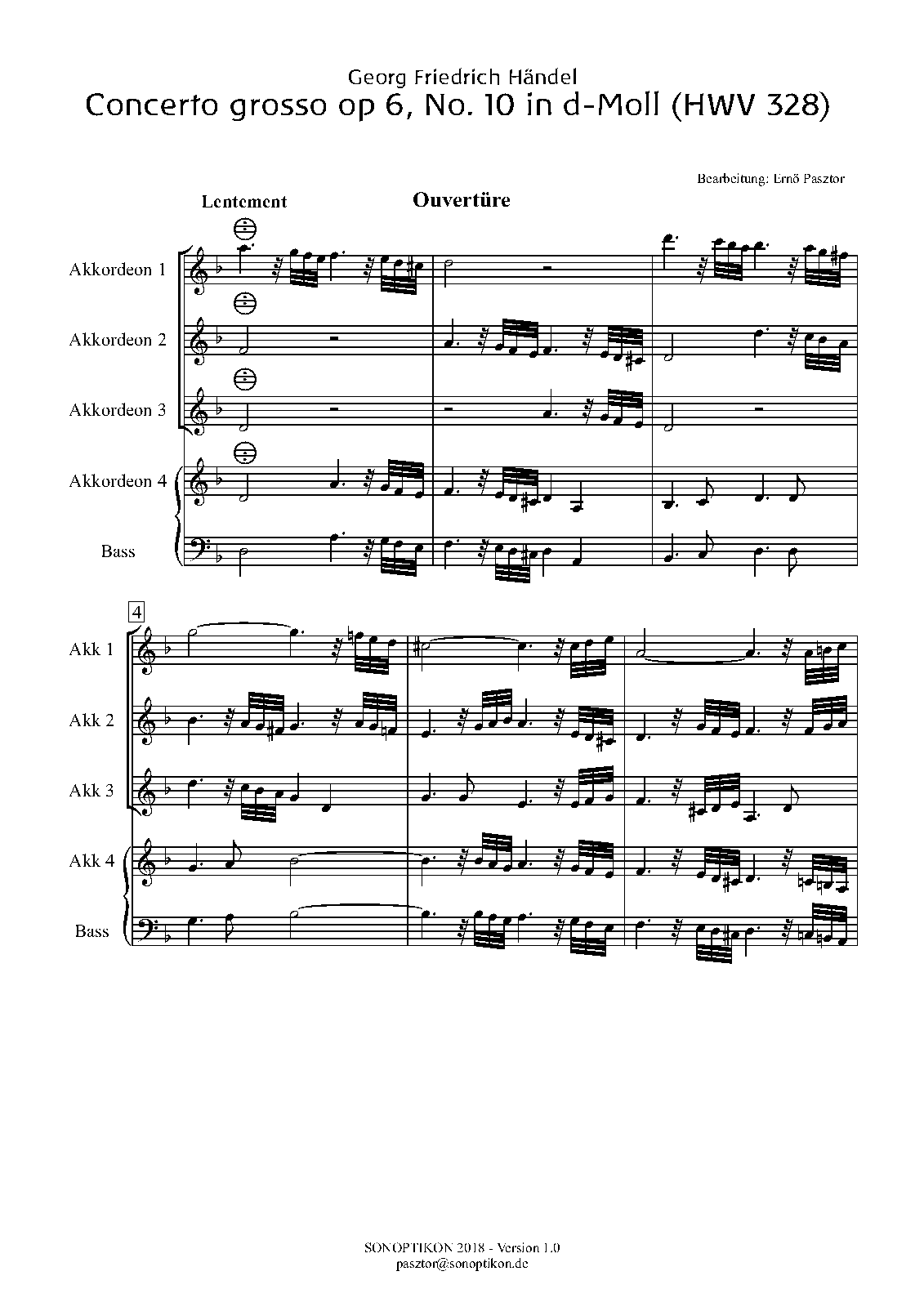 Opus/Catalogue NumberOp./Cat. No. HWV 328 ; Op.6 No.10