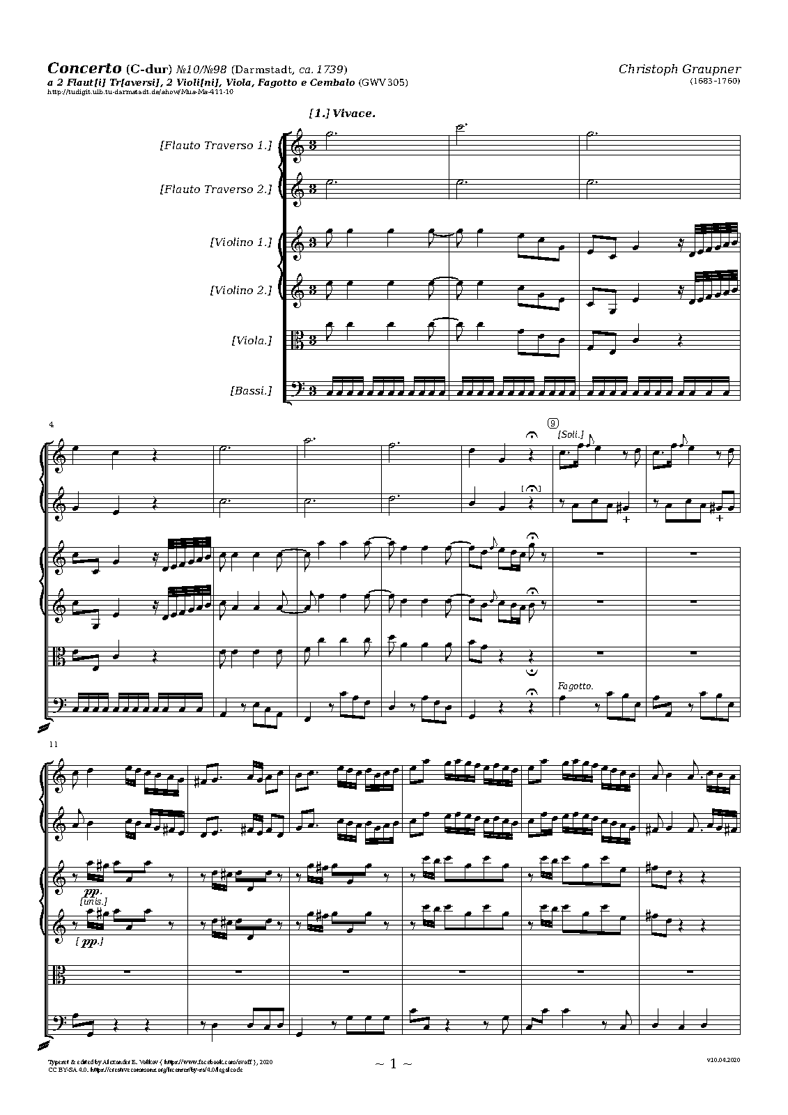 ⇒ 8 more: Flute 1 • Flute 2 • Flute 1/2 (in one score) • Violins I • Violins II • Violas • Basses (including Bassoon solos) • Basses in ripieno (without Bassoon solos)