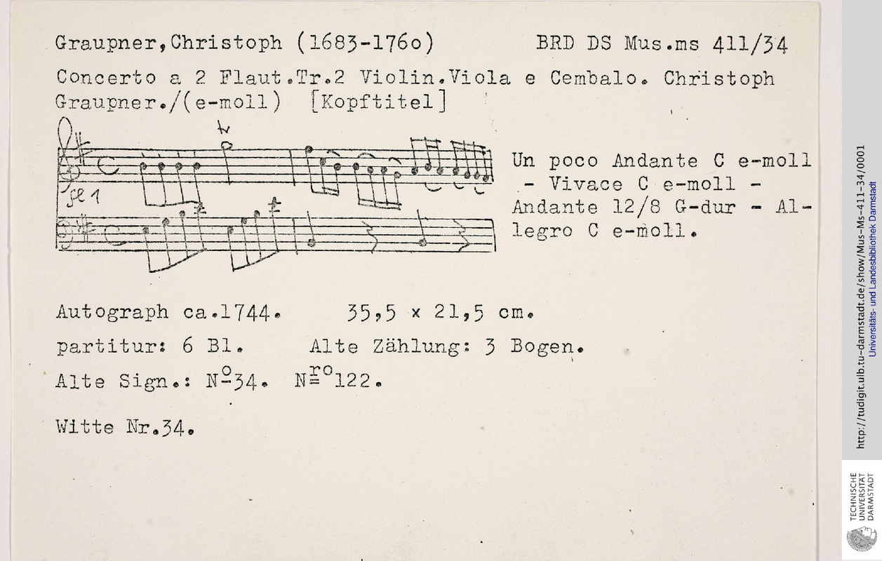 | Year/Date of CompositionY/D of Comp. | ca. 1744 |
