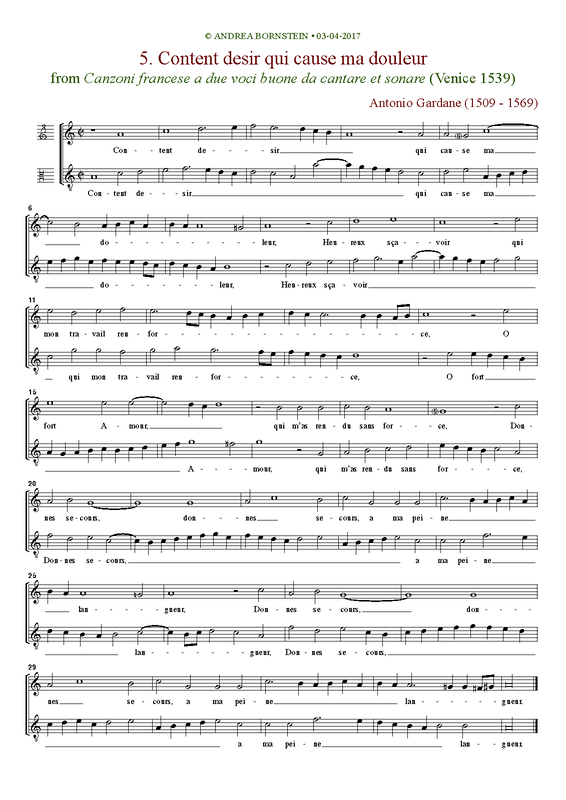 | First Publication | 1539 in Canzoni francese a due voci (No.5) |