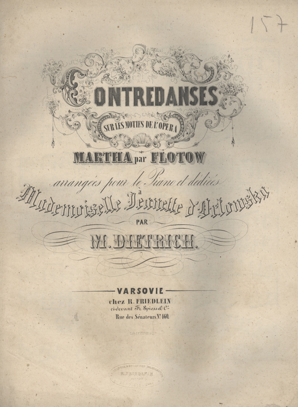 | Alternative. Title | Contredanses sur les Motifs de l'Opera Martha par Flotow |