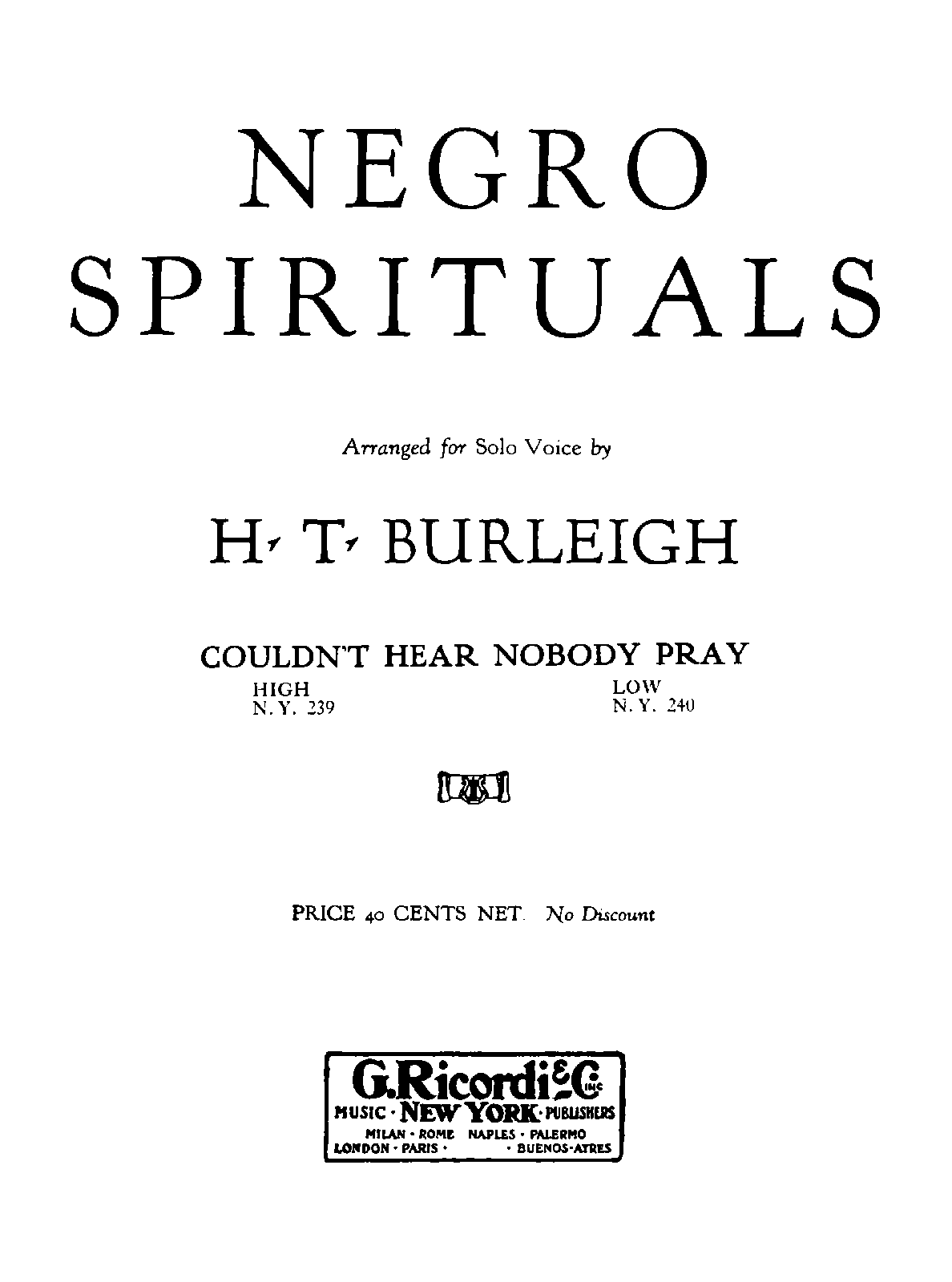 | Genre Categories | Spirituals; For voice, piano; For voices with keyboard; |