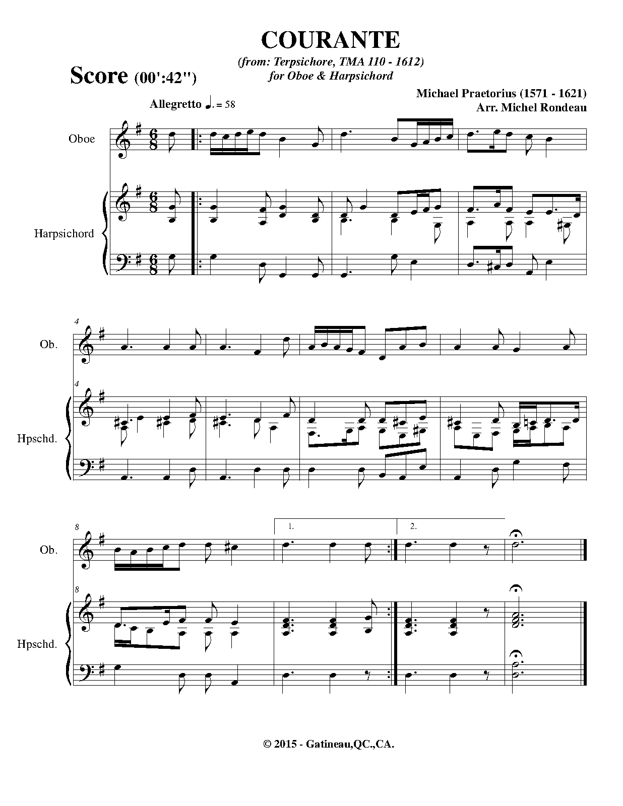 | Extra Information | These pieces were assembled and arranged by Praetorius for his 1612 collection. It is unknown how many, or if any, of the works in the collection were actually composed by Praetorius as opposed to being popular dance tunes arranged by him. The instrumentation is not specified in the original, and simply listed as "à 4". |