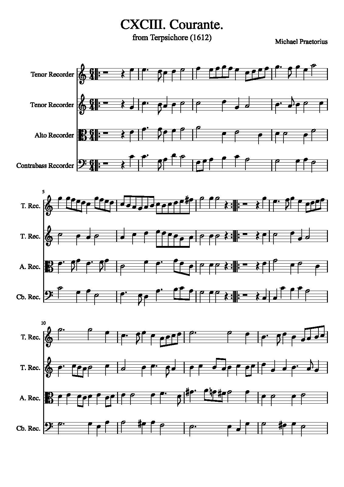 | Extra Information | These pieces were assembled and arranged by Praetorius for his 1612 collection. It is unknown how many, or if any, of the works in the collection were actually composed by Praetorius as opposed to being popular dance tunes arranged by him. The instrumentation is not specified in the original, and simply listed as "à 4". |