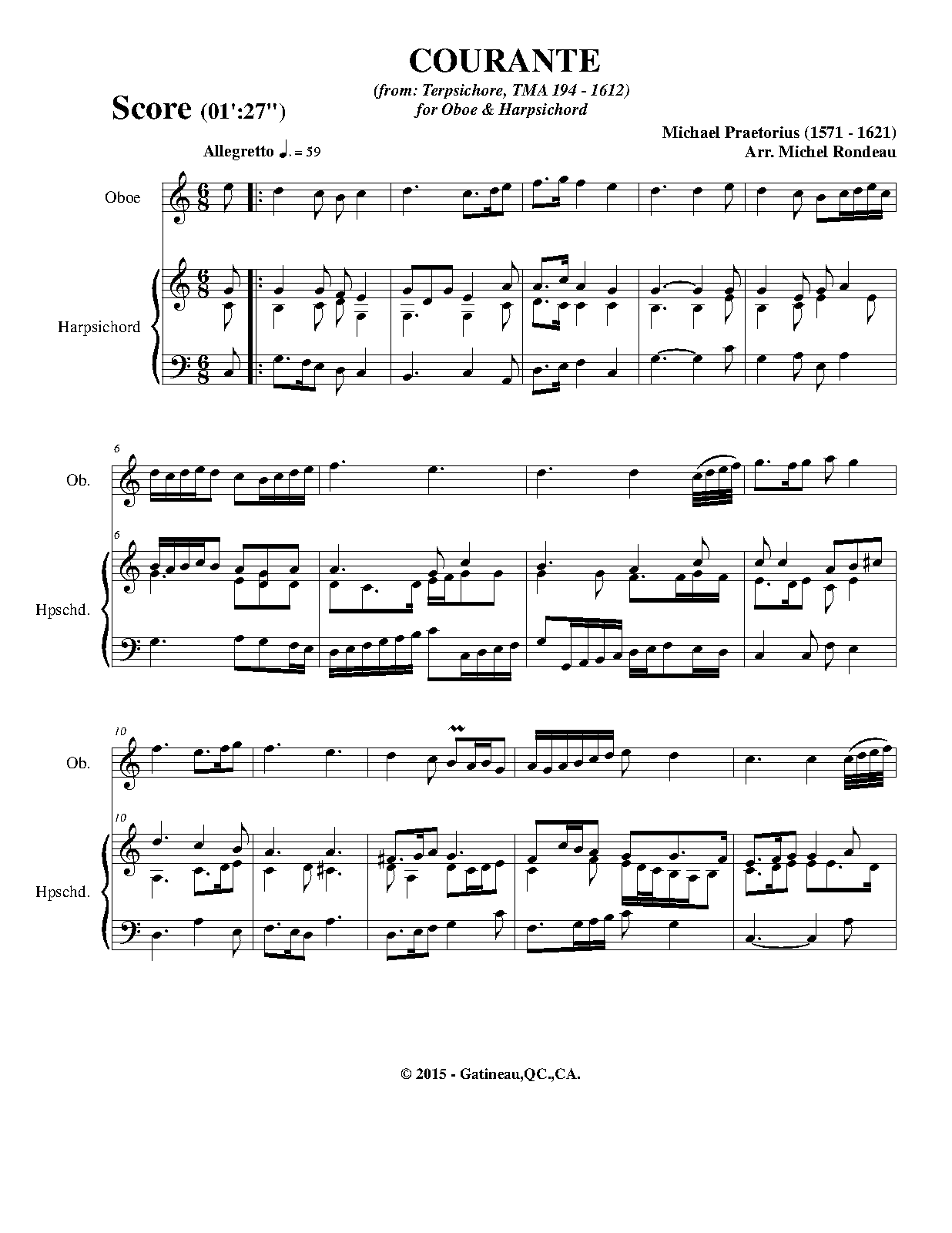 | Extra Information | These pieces were assembled and arranged by Praetorius for his 1612 collection. It is unknown how many, or if any, of the works in the collection were actually composed by Praetorius as opposed to being popular dance tunes arranged by him. The instrumentation is not specified in the original, and simply listed as "à 4". |