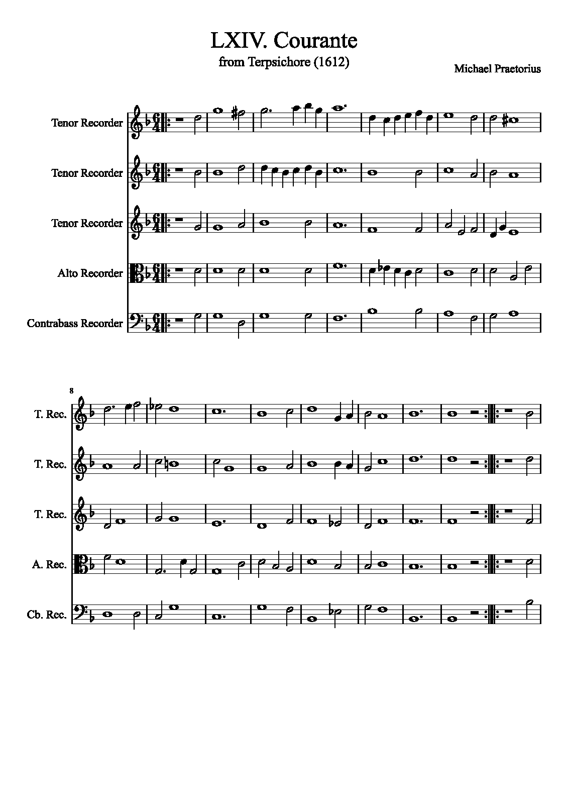 | Extra Information | These pieces were assembled and arranged by Praetorius for his 1612 collection. It is unknown how many, or if any, of the works in the collection were actually composed by Praetorius as opposed to being popular dance tunes arranged by him. The instrumentation is not specified in the original, and simply listed as "à 5". |