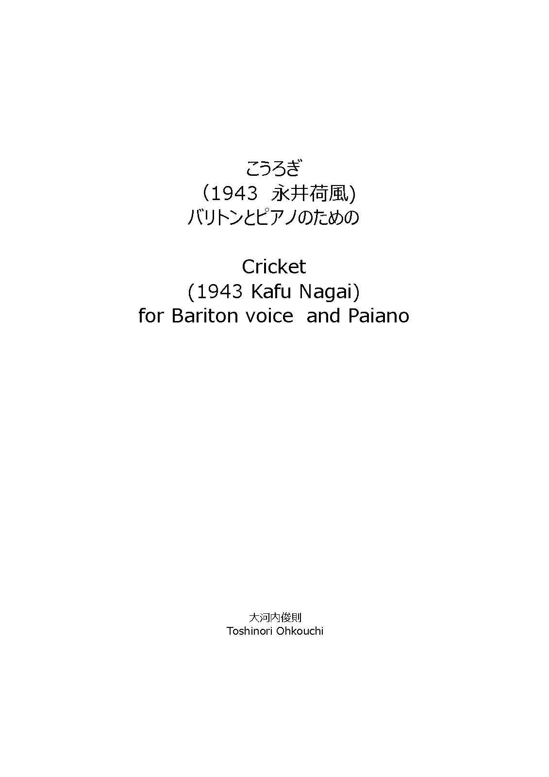 | Work Title | Cricket (Kafu Nagai 1943) for Bariton voice and Piano |