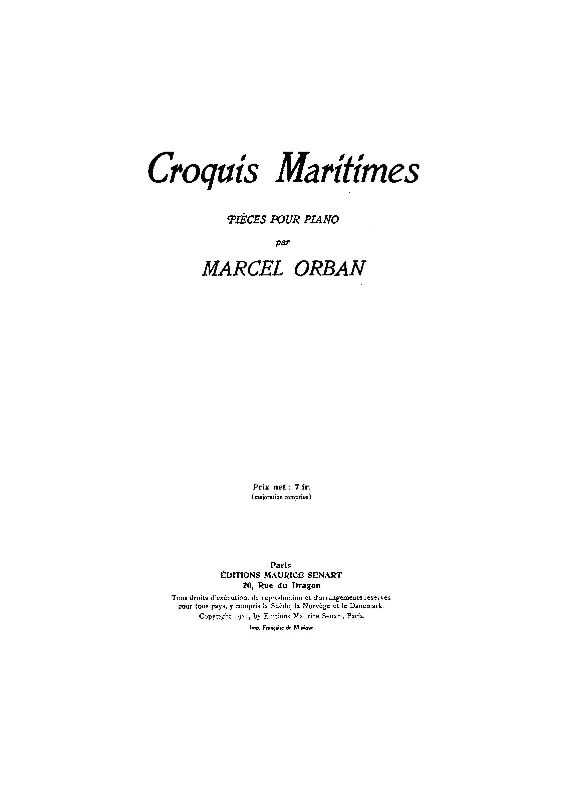 Publisher. Info. Paris: Maurice Senart, 1921. Plate E.M.S. 4178.