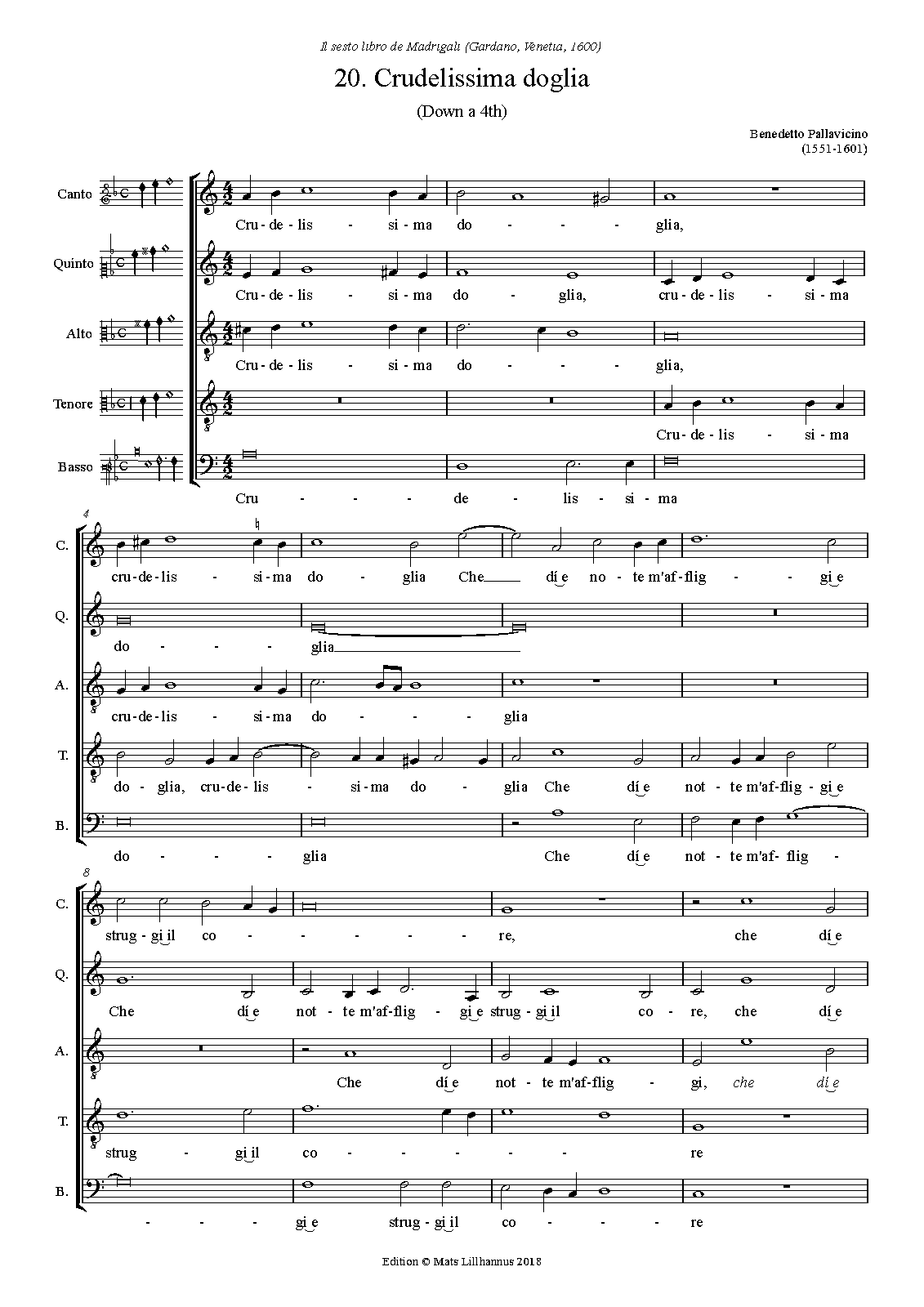 | First Publication. | 1600 in Madrigali a 5 voci, Libro 6 (Venice: Angelo Gardano), no.19 |