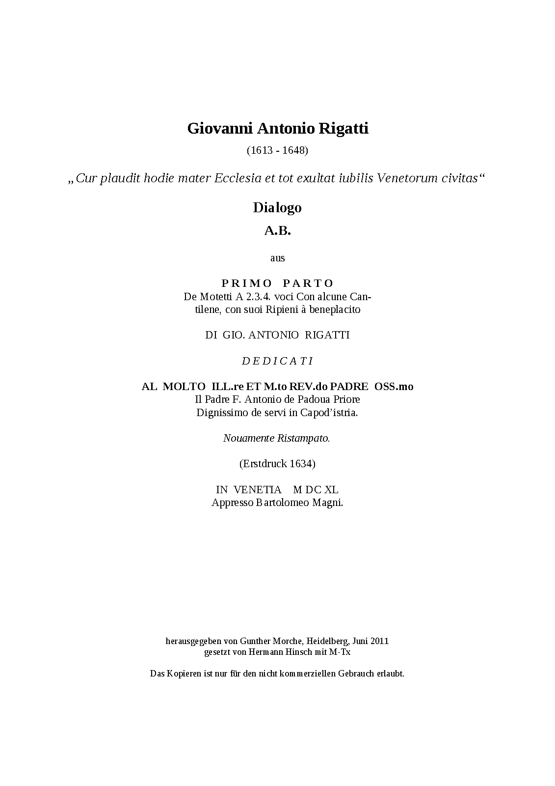 Cur plaudit hodie Mater Ecclesia (Rigatti, Giovanni Antonio)