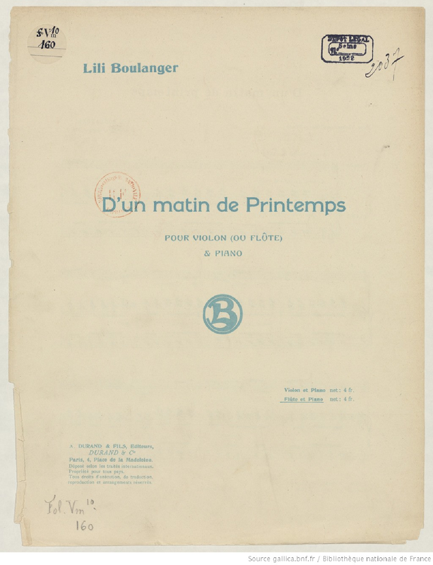 | Extra Information | Originally composed as a duet for violin and piano; in the spring of 1917 the work was adapted as a trio version for violin, cello, and piano in 1917, and as a duet for flute and piano in the same year. In January 1918, Boulanger wrote an orchestral version. (English Wikipedia) |