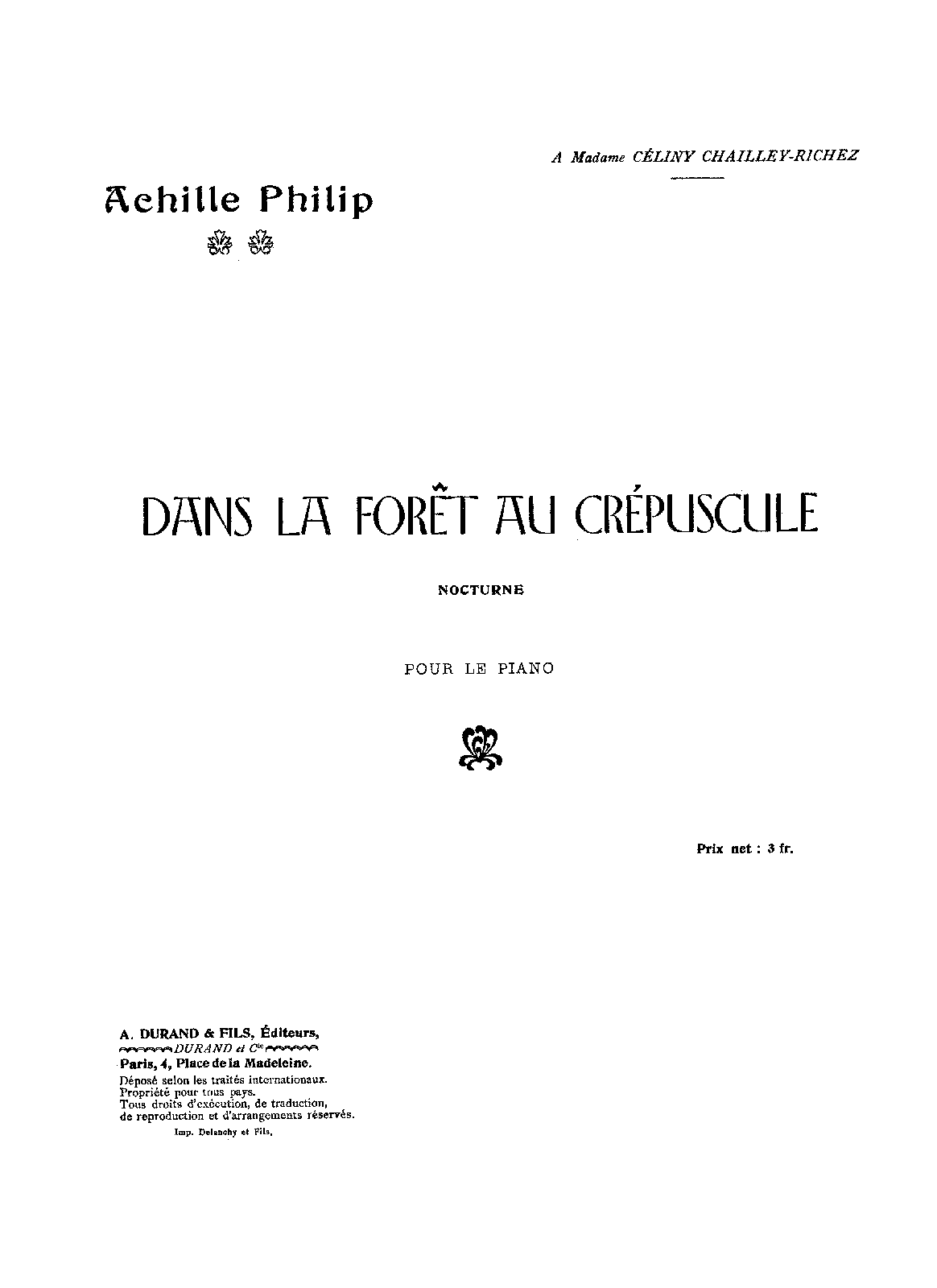 Publisher. Info. Paris: Durand et Cie., 1913. Plate D. & F. 8854.