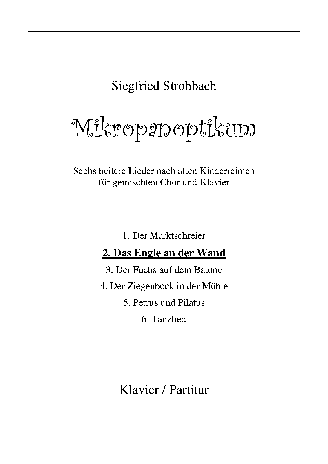 | Work Title | Das Engle an der Wand, from Sechs heitere Lieder nach alten Kinderreimen |