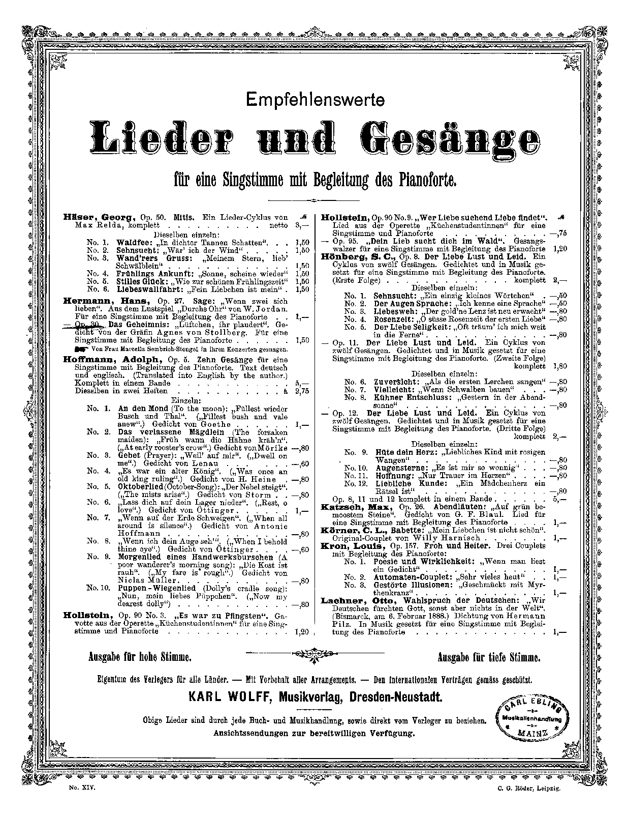 | Genre Categories | Songs; For voice, piano; For voices with keyboard; |