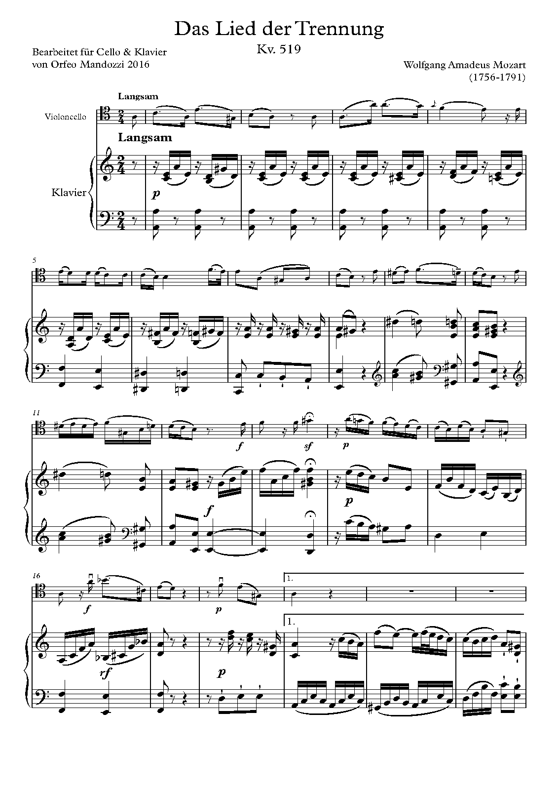 | Name Aliases | Die Engel Gottes weinen; K. 519; Die Engel Gottes weinen, wo Liebende sich trennen; Trennungslied |