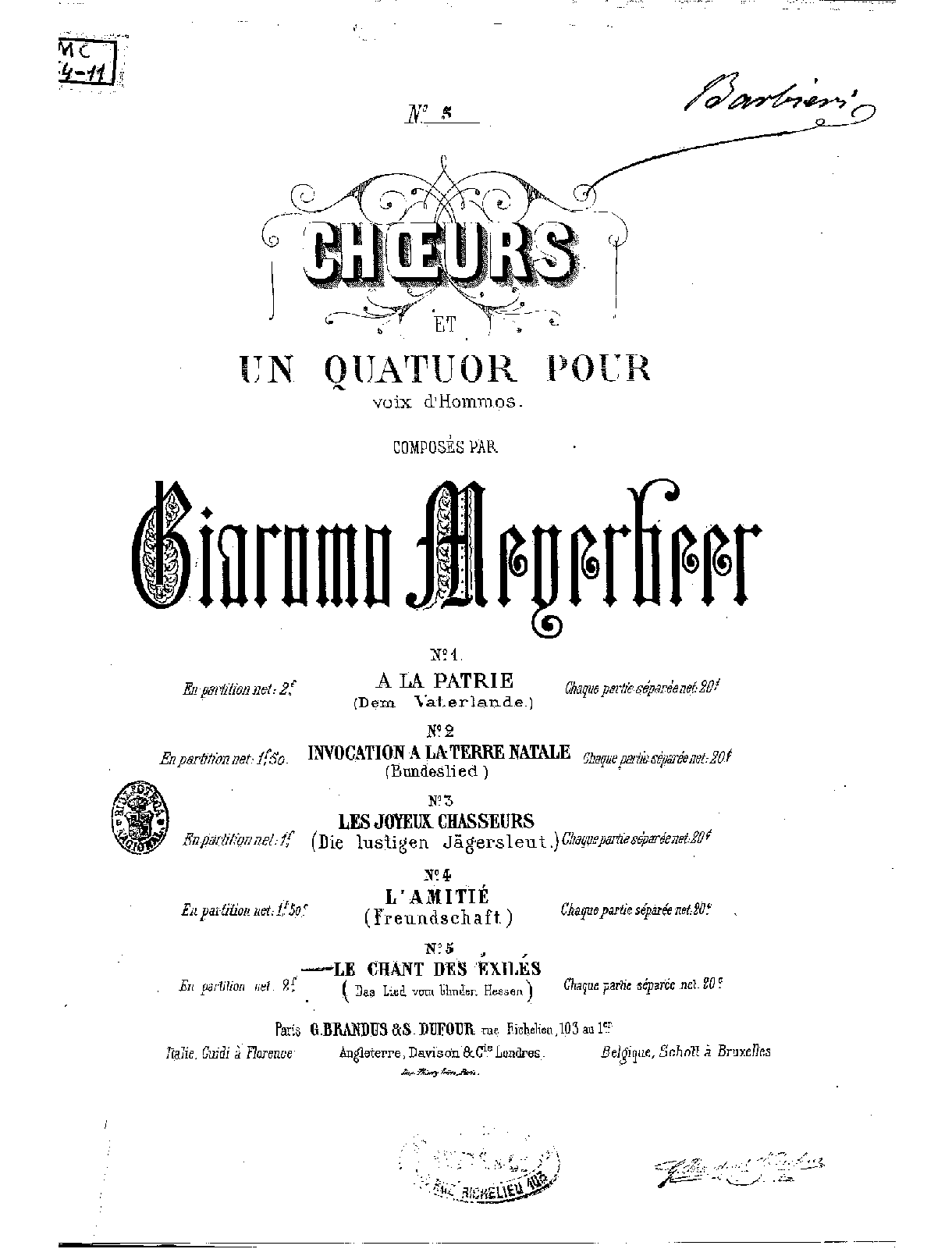 | Genre Categories | Lieder; Songs; For voice, male chorus; |