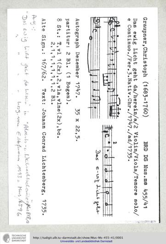 Das ewige Licht geht da herein, GWV 1107/47 (Graupner, Christoph)