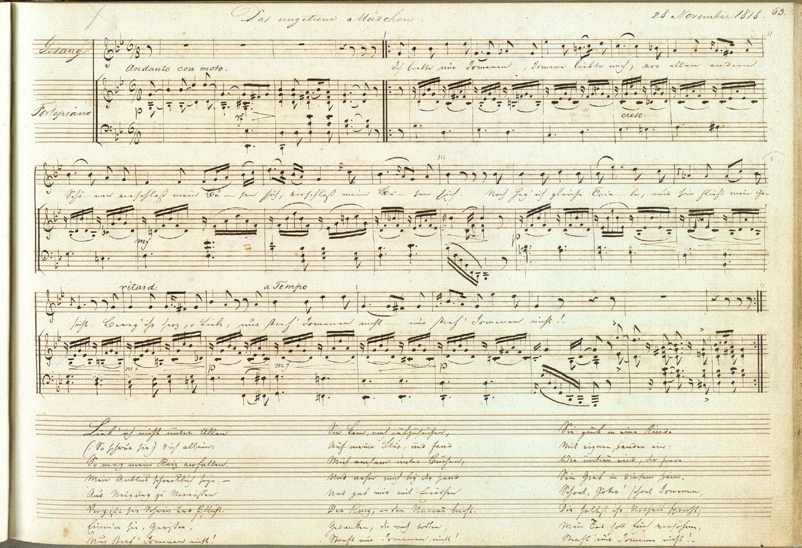 The lyrics are from an anonymous poem from Karl Wilhelm Ramler's (1725-1798) collection "Lyrische Bluhmenlese", Leipzig 1774.