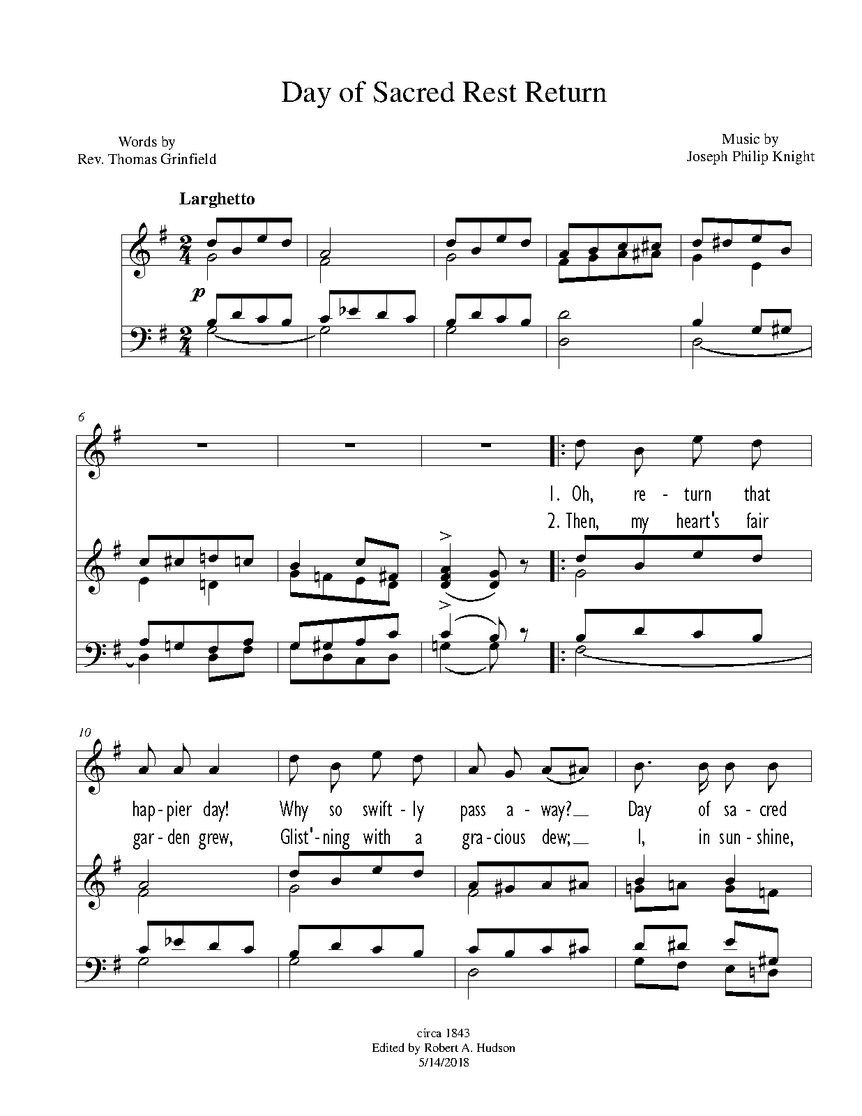 | Work Title | Day of Sacred Rest Return |