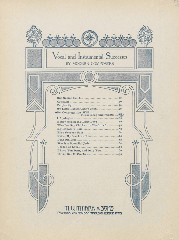 | Work Title | De Congregation Will Please Keep Their Seats |