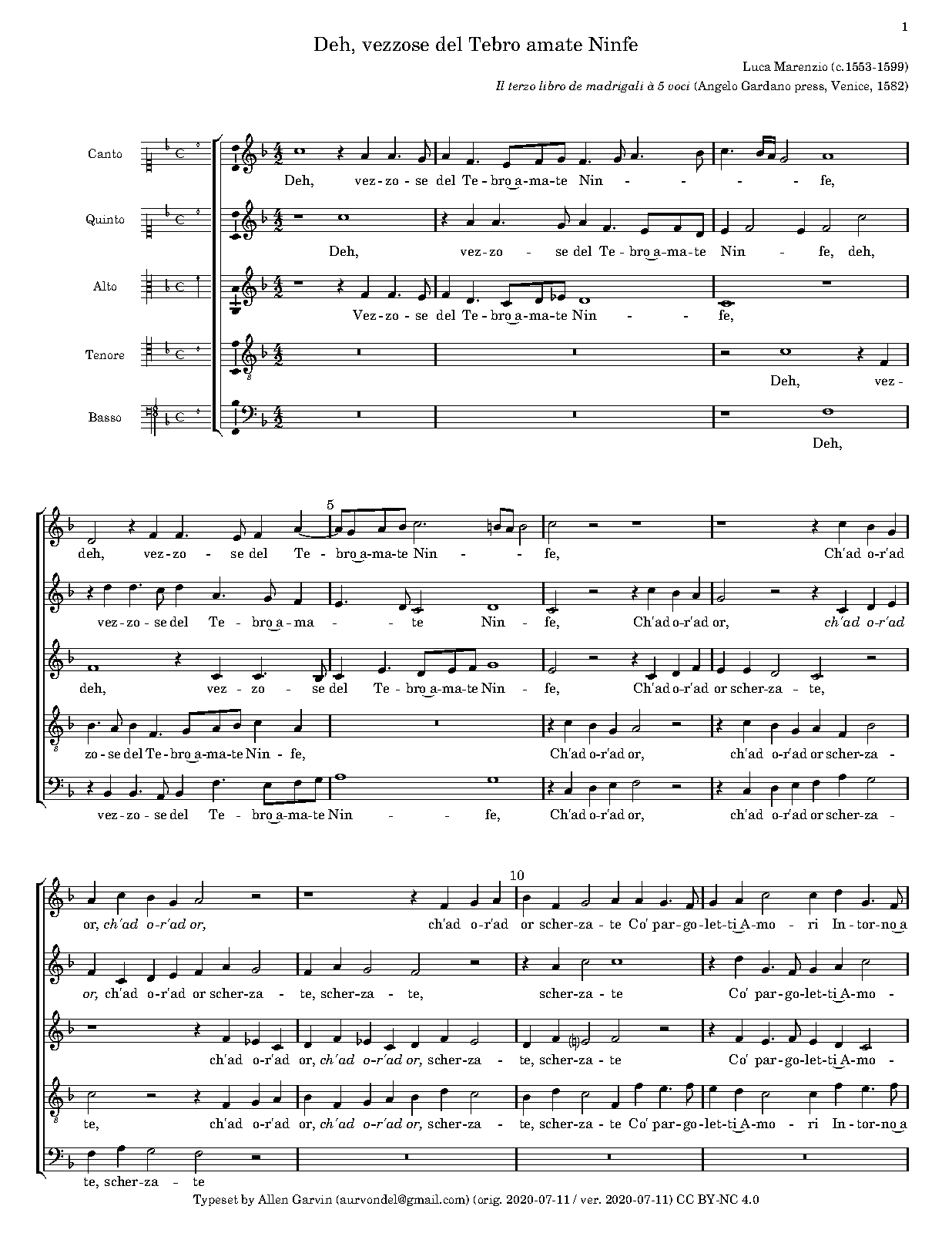 | First Publication | 1582 in Il terzo libro de madrigali à 5 voci (Venice: Angelo Gardano press), no.13 |