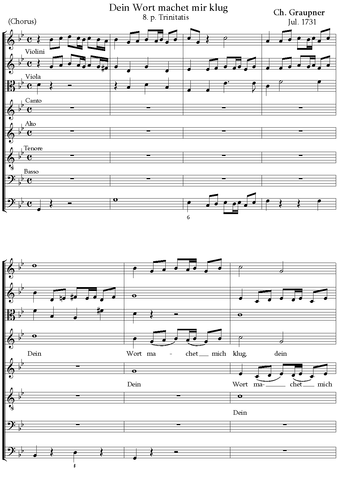 | Instrumentation | Voices: soprano, alto, tenor, bass Orchestra: 2 flutes, strings, continuo |