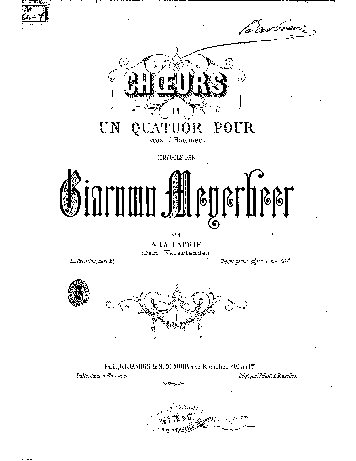 Publisher. Info. Paris: G. Brandus & S. Dufour, n.d.[1861]. Plate B. et D.10,390.