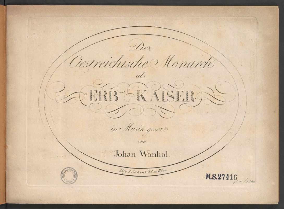 Der Oestreichische [sic] Monarch als Erb Kaiser in Musik gesetzt von Johan Wanhal
