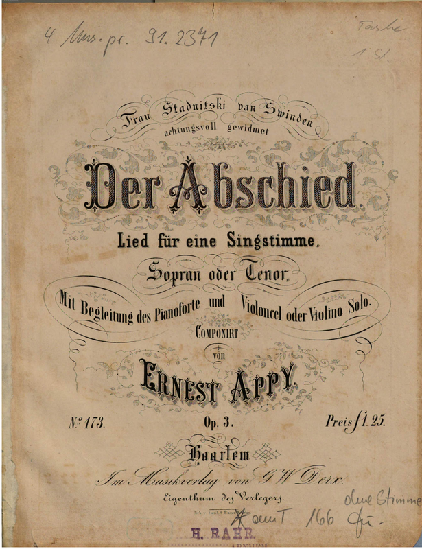 | Genre Categories | Lieder; Songs; For voice, violin, piano; |